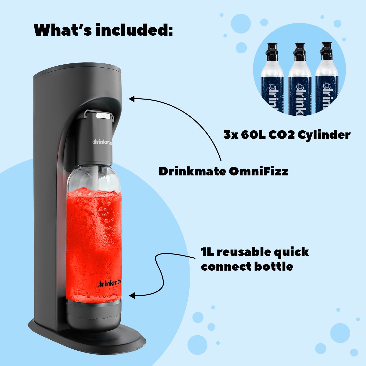 • Includes a Drinkmate CO2 Exchange box. Exchange your empties here.